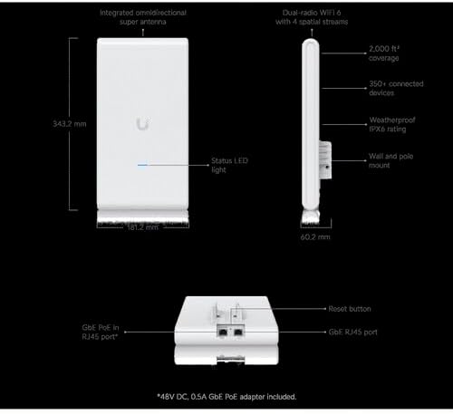 • 185 m² (2,000 ft²) coverage with the integrated omnidirectional super antenna